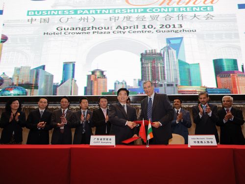 4月10日,由广东省贸促会与印度商人协会共同主办的“中国(广州)—印度经贸合作大会”在广州隆重举行。印度商人协会主席Niranjan Hiranandani(何尼然)主持会议,广东省贸促会会长陈秋彦、印度驻广州总领事K. Nagaraj Naidu(高志远)等出席了会议并致辞。会议由开幕式、专题座谈、商务交流午宴、企业对接会及交流晚宴等环节组成,印度企业家代表团及广东企业代表共约300人参加了系列活动。我beat365企业集团公司应邀并由集团公司国际贸易部经理COCO代表出席。会上,广东省贸促会与印度商人协会共同签署了双边企业家理事会协议。