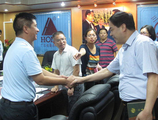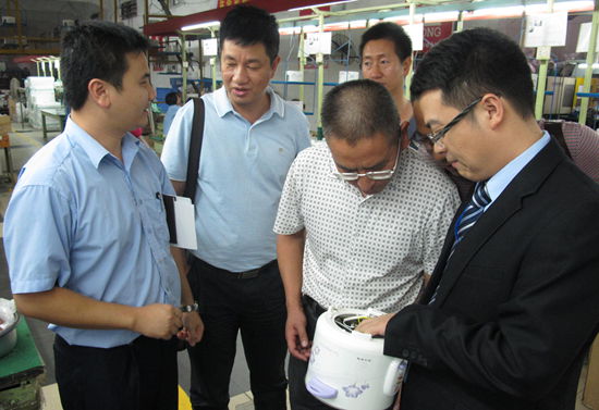 | 2013年10月21日,云南省玉溪市市委、市政府决定由玉溪市大化产业园区管委会李戈良副主任、玉溪市新平县自福庄副县长、玉溪市大化产业园区管委会招商局吴文坤调研员、玉溪市招商局企业服务科长王嘉丽等一行联同相关招商项目官员组成的考察小组莅临我集团公司参观考察。 集团总裁叶志中、副总徐阔先生、销售经理杨永松先生热情接待了考察小组领导。 ![]() 集团公司叶志中总裁与李戈良副县长热情握手欢迎 ![]() 徐阔副总向领导介绍电饭煲生产工艺结构 ![]() 徐阔步副总向领导讲解电饭煲外壳生产结构 ![]() 销售经理杨永松先生向领导介绍威力神酒产品 ![]() 杨永松经理向领导介绍热销杯装威力神酒 ![]() 叶志中总裁、副总徐阔先生等部门经理与考察团领导展开深入会谈 ![]() 叶志中总裁向莅临领导汇报集团公司概况 |