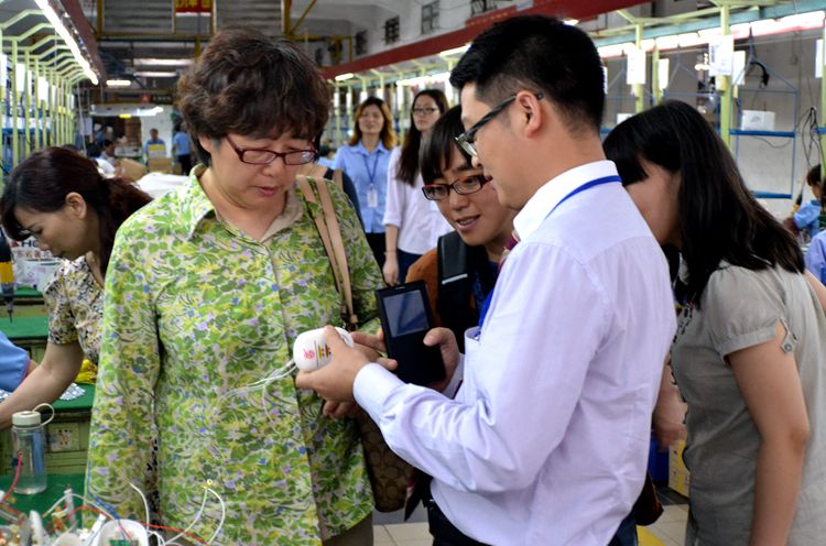 徐总带王雷副理事长一行参观电饭煲组装车间