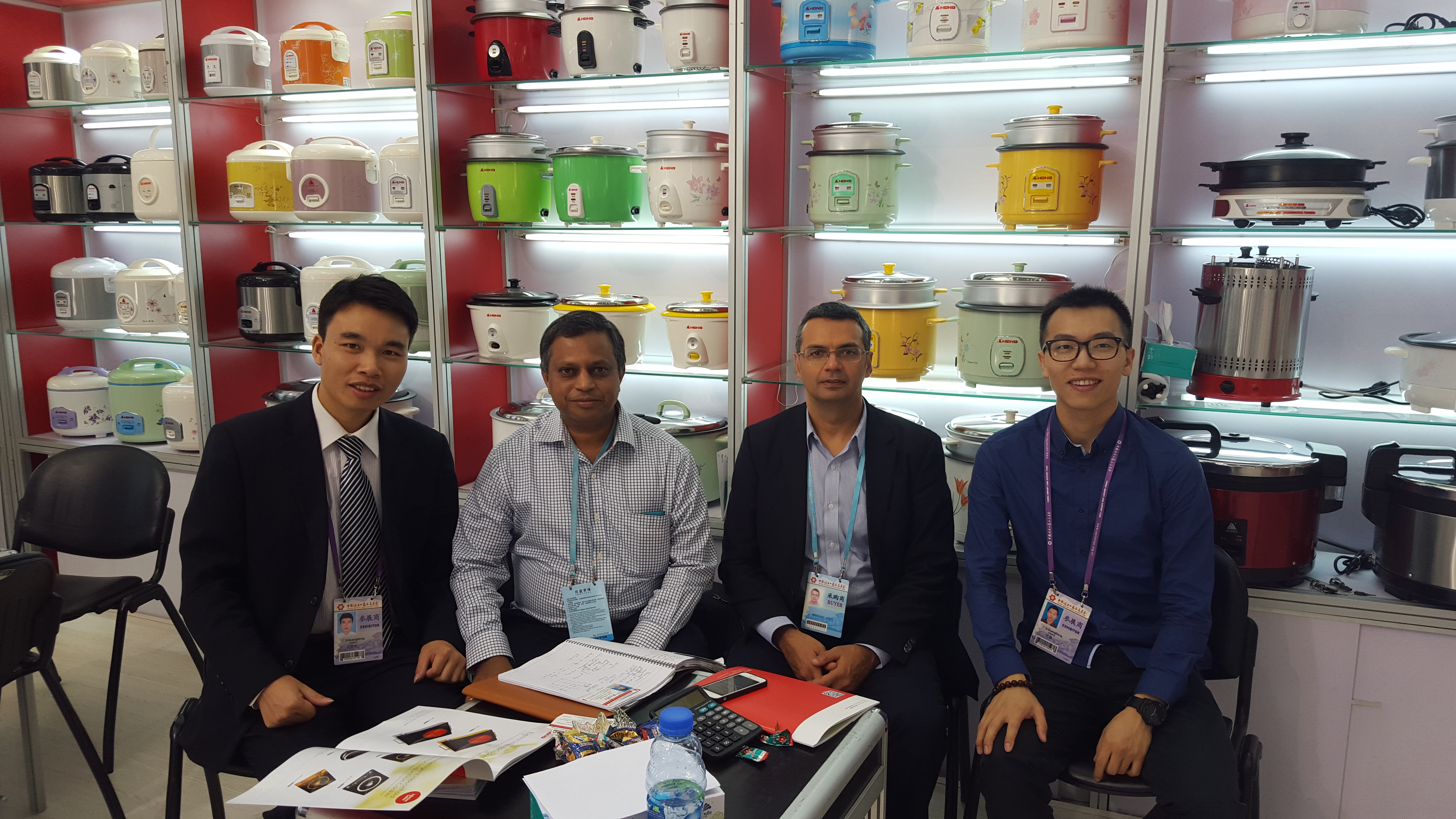为了筹划好秋季广交会,抓住出口机遇,我司组成了强大的产品展示、销售团队,精心设计出新颖绚丽的展厅,以自主研发的新型电饭煲产品为推手,以3D打印机新产品来吸引世界各地区客商的眼球。展示产品以来,美国、俄罗斯、韩国、巴西、南非、巴基斯坦、越南、马来西亚、印度、印度尼西亚、阿联酋、迪拜等各国客商朋友对我司推出的电饭煲各系列新产品大为赞赏,客如潮涌,收获丰硕。