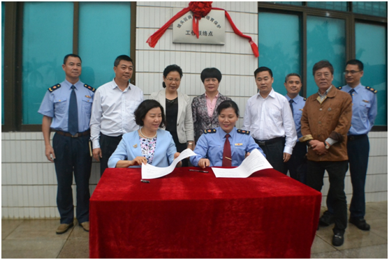 湛江市工商局林红局长与我司钟志清董事长为商标品牌培育保护工作联系点揭牌。