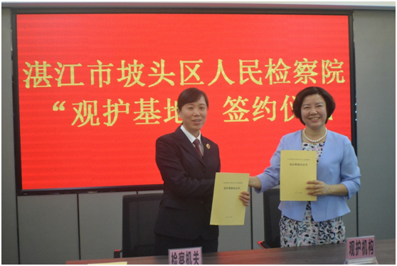 2017年11月30日,坡头区检察院在广东省湛江市家用电器工业有限公司和湛江三角威力神酿酒集团有限公司,分别建立未成年人观护基地。这一举措,是坡头区检察院在全市范围内的首创。在挂牌仪式中,还邀请了团市委、团区委、镇政府等职能部门、企业代表、社工代表共30多人出席仪式。
