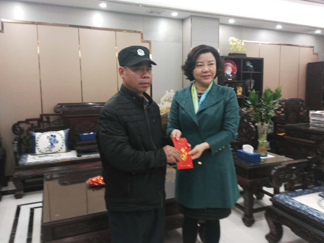 2018年3月16日,公司钟志清董事长将捐款25330元交给职工莫子见。莫子见激动得热泪盈眶,感谢公司钟总和全体员工的关心。