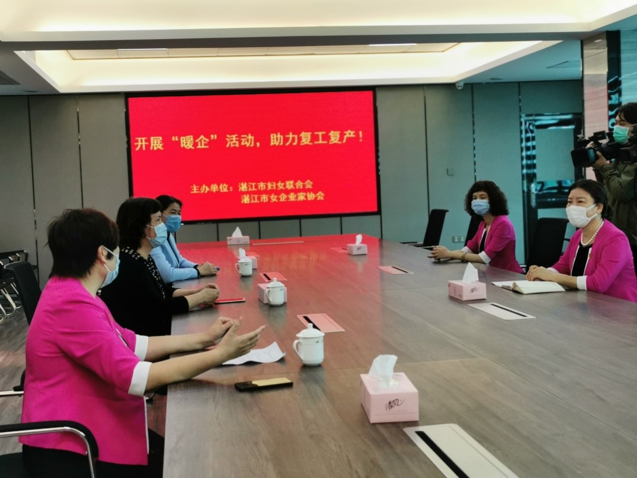 湛江市妇联联手女企业家协会到我司召开 “暖企”座谈会,助力复工复产。