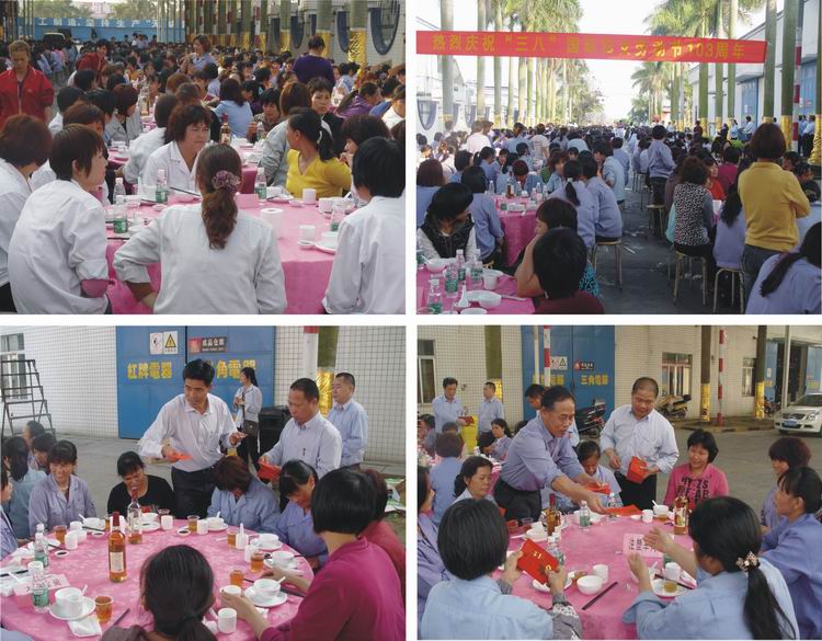 会上工会主席谭惠兰女士发言表彰了公司先进女职工敬岗爱岗,敬业乐业,以厂为家,厂兴我荣的精神;并公布了公司最新出台的一系列的职工福利喜讯。