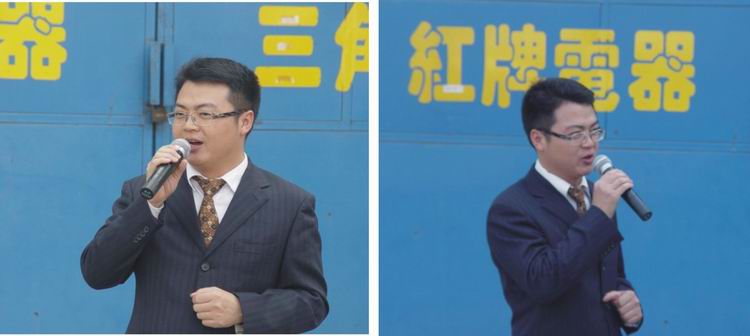 (聚餐现场)生产部经理詹德文、泡沫厂厂长莫建如、品管部李森、技术工程师李儒明代表集团公司派发红包与抽奖券