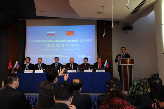 中国国际贸易促进委员会与俄罗斯工商会、中俄双边企业家理事会共同主办的“中俄经贸合作论坛”现场情况